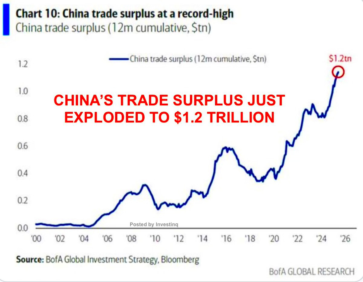 In 2025, China reported a record $1.2 trillion trade surplus meaning it sold far more goods than it imported.