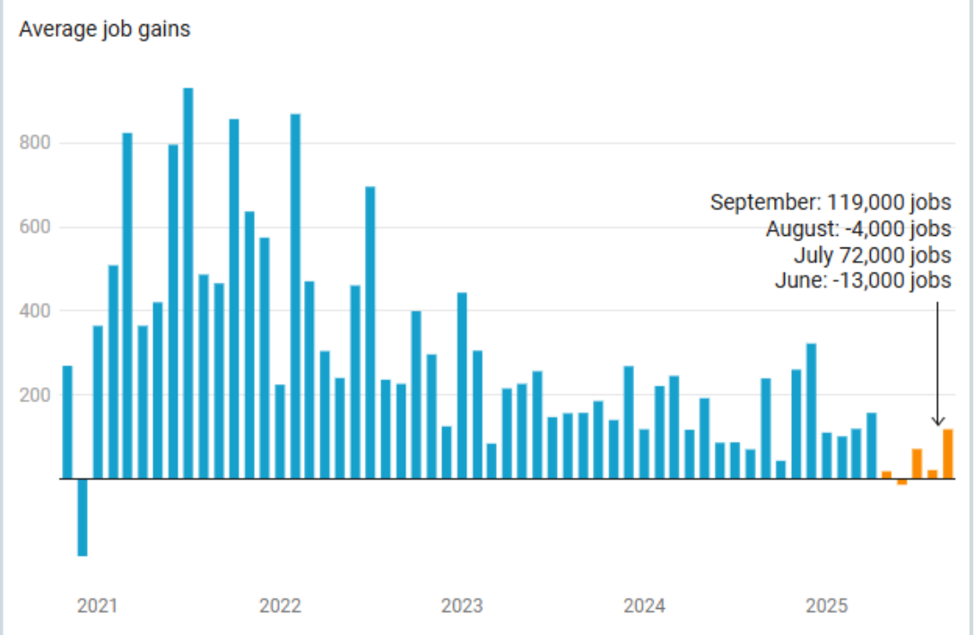 The U.S. added 119,000 jobs in September better than expectations but the unemployment rate ticked up to 4.4%, the highest since October 2021.