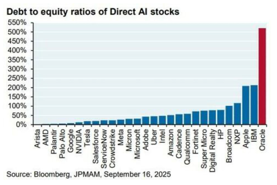Oracle’s stock surged by 25% after being promised $60 billion a year from OpenAI, a sum OpenAI hasn’t earned yet, to provide cloud computing facilities that Oracle hasn’t built yet, and which will require 4.5 GW of power (equivalent to 2.25 Hoover Dams or four nuclear plants), along with increased borrowing by Oracle, whose debt to equity ratio is already 500%, compared to 50% for Amazon, 30% for Microsoft, and even less for Meta and Google. In other words, the tech capital cycle may be on the brink of change.