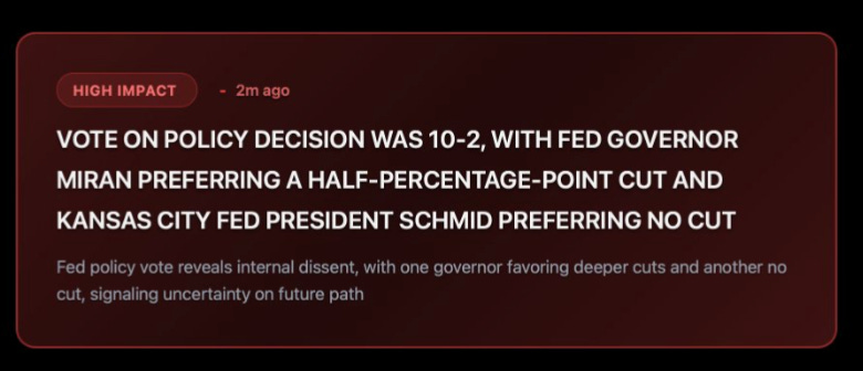 It’s the confusion behind it. The vote came in at 10–2, with one governor begging for a deeper 50bps slash and another saying “don’t cut at all.”