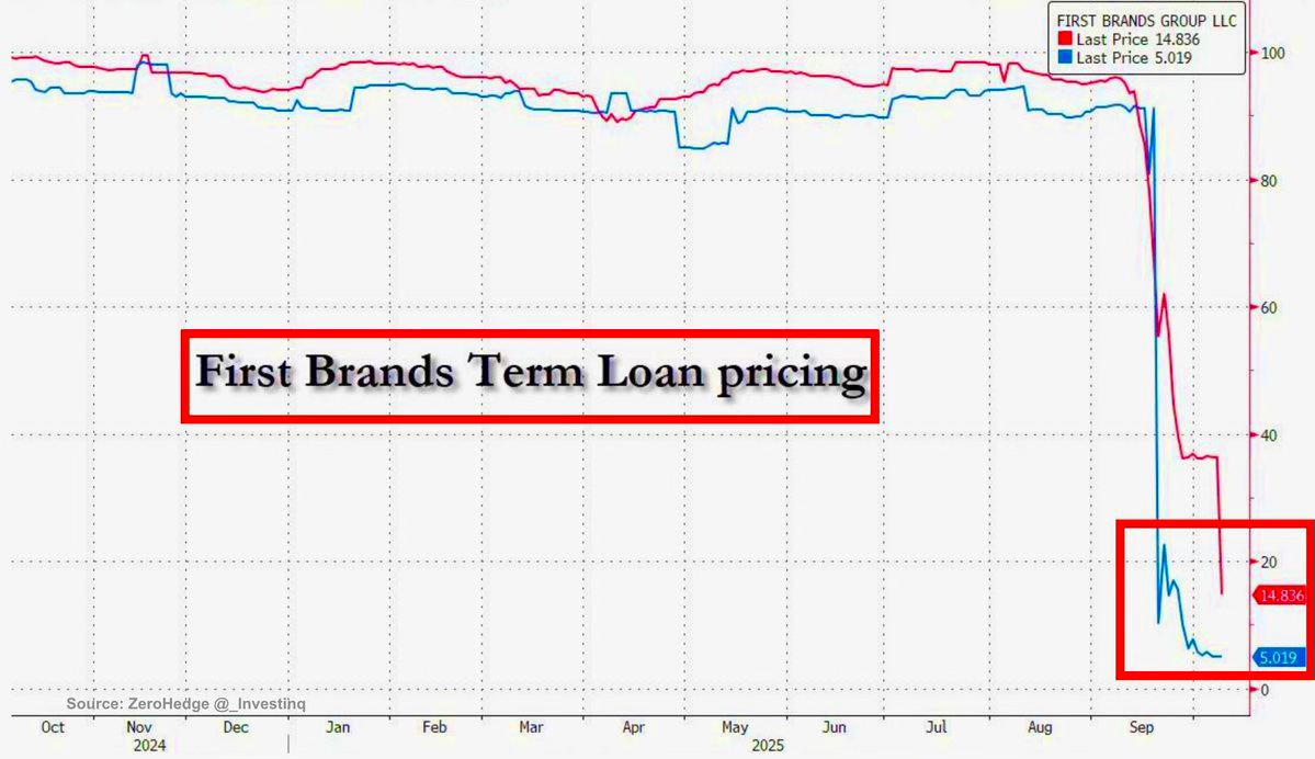 These banking losses come right after two massive corporate bankruptcies, First Brands and Tricolor Holdings both of which revealed how deep the problems in credit markets may go.