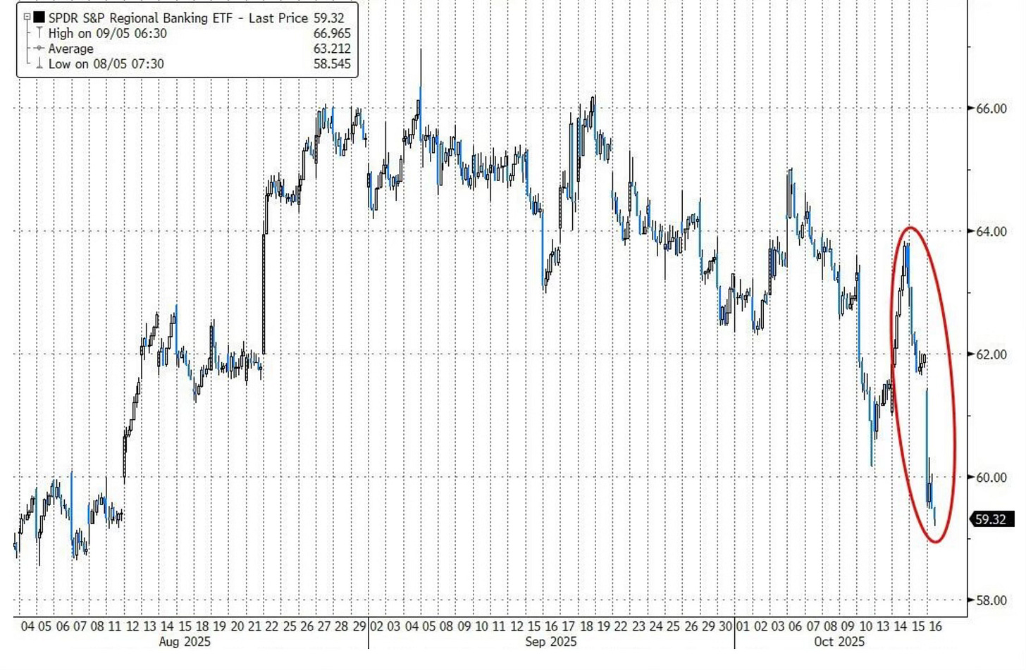 Investors are finally realizing that these aren’t just one-off mistakes, they’re symptoms of a bigger problem. For years, smaller banks stretched their lending standards to chase returns and keep up with the bigger players. They handed out loans that looked fine when money was cheap, but now that rates are higher and liquidity is tight, those cracks are showing fast. What’s happening today feels less like an accident and more like the system catching up to itself.