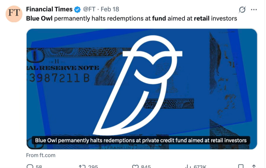 Blue Owl Capital was first back in February, it didn’t just pause withdrawals from its retail private credit fund, it shut them down for good.