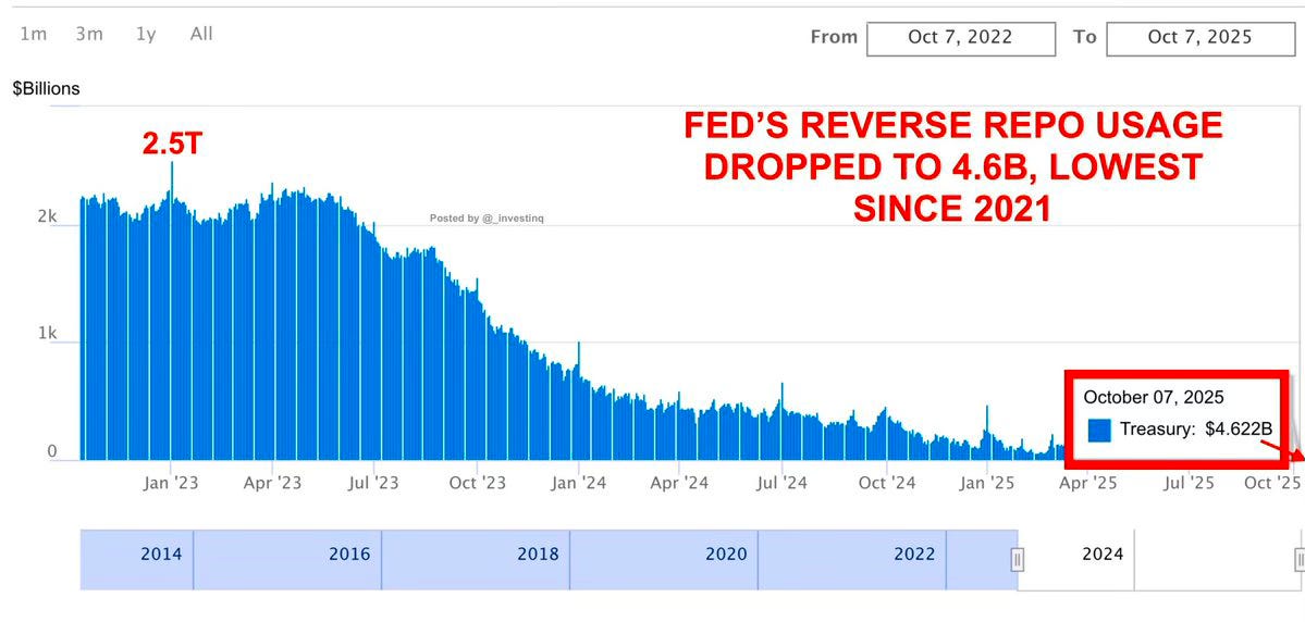 For now, stocks may keep drifting on momentum and passive inflows but under the surface, the market is running on thinner oxygen by the day. The real story of 2025 might not be rate cuts or inflation at all, it could be how long the Fed can keep this liquidity game going before something breaks.