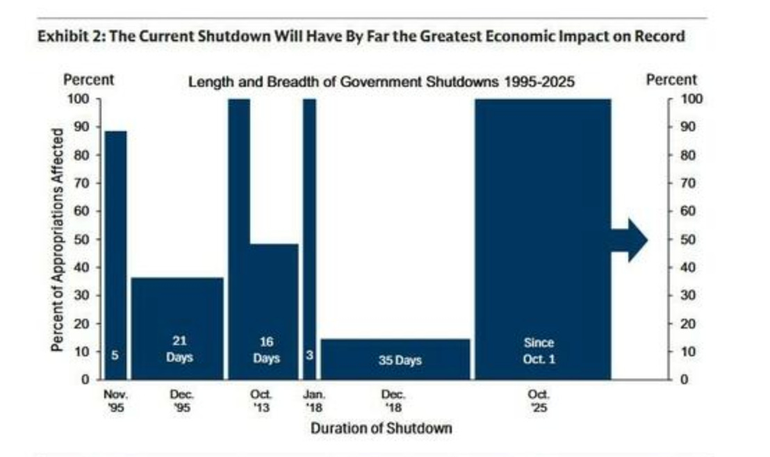 Goldman Sachs estimates the shutdown shaved 1.15 percentage points off Q4 GDP growth, the largest hit from a government stoppage on record.