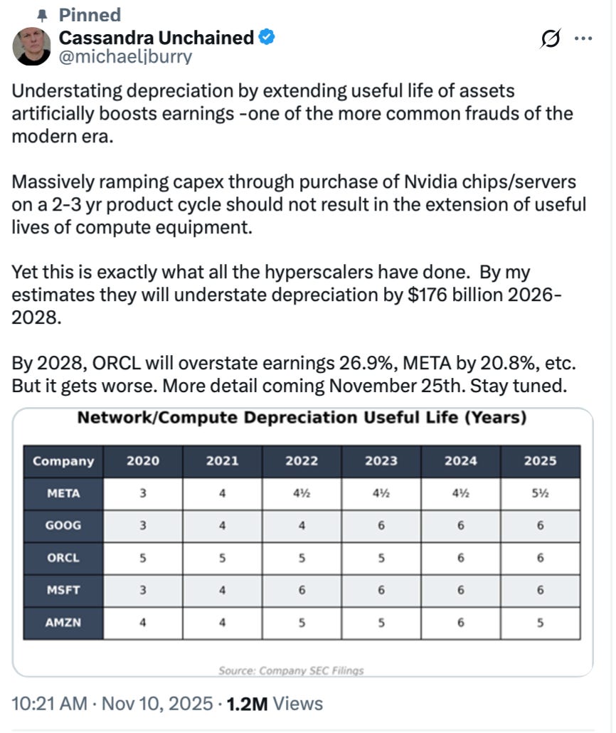 Even our favorite bear, Michael Burry, was back today, posting a chart and a warning about depreciation fraud.