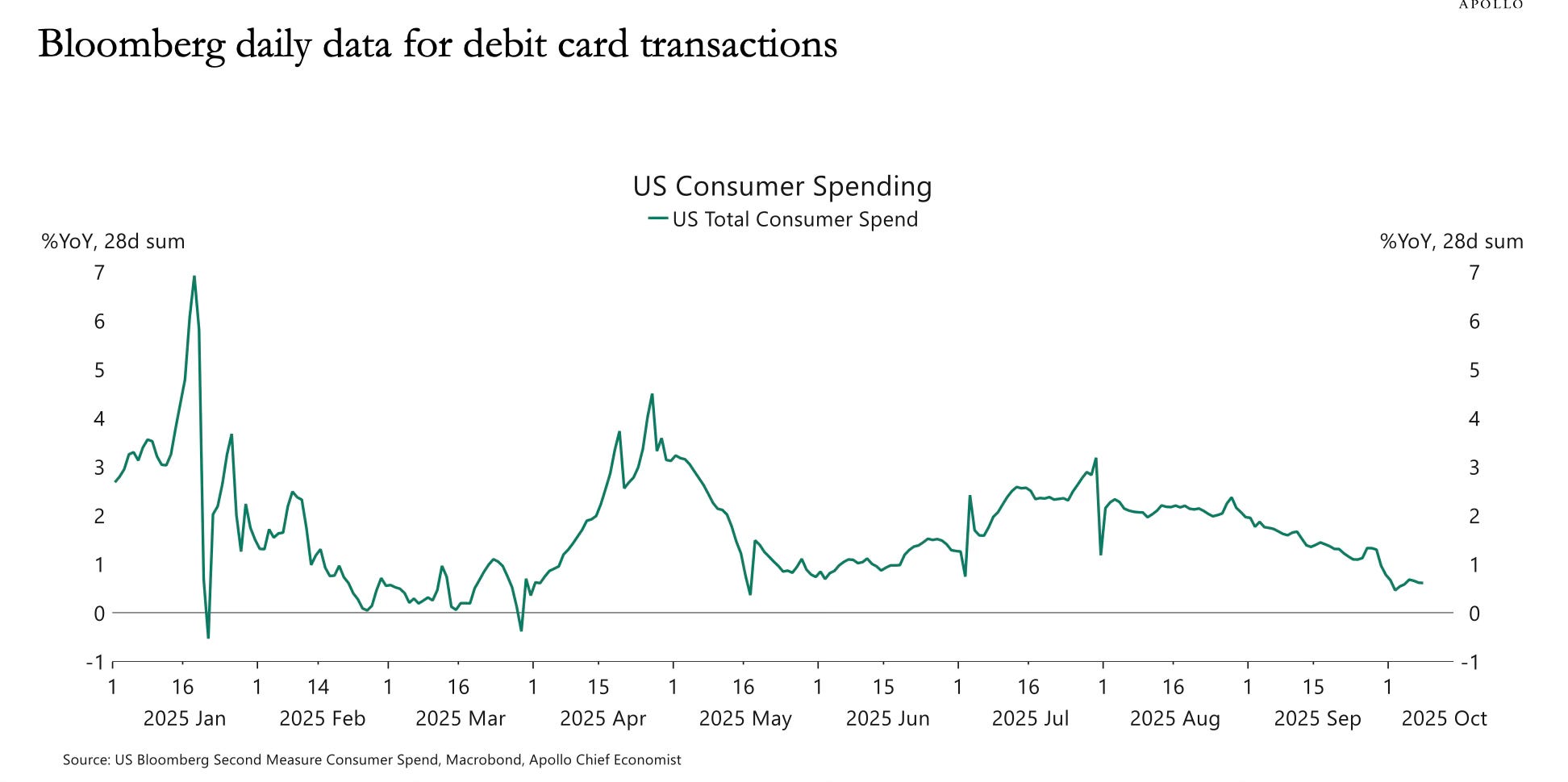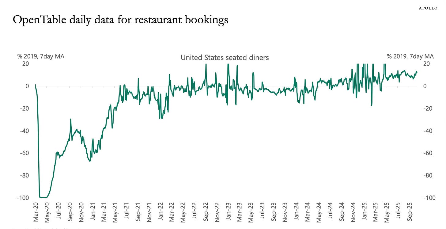 While the federal data infrastructure is frozen, Apollo’s private dataset built from alternative, high-frequency indicators has become one of my favorite ways to track what’s really happening in the economy right now.