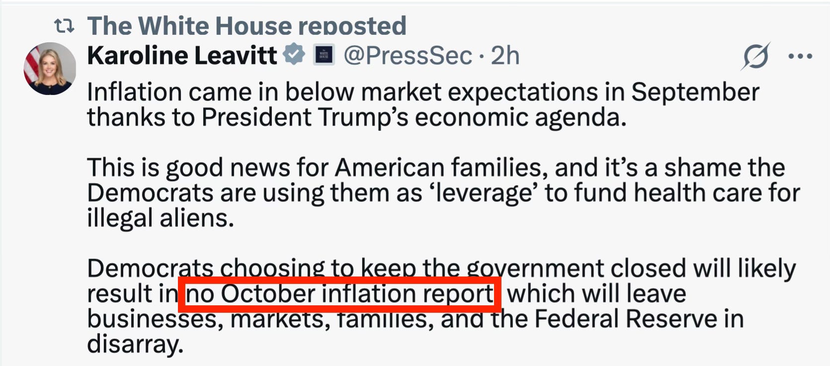 The only reason we even got the September CPI is because the Social Security Administration legally needed it to calculate cost-of-living adjustments for retirees.